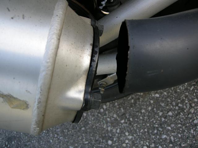 マフラーを受けるエキパイの付け根に・・・わずかなクラックが入っている。