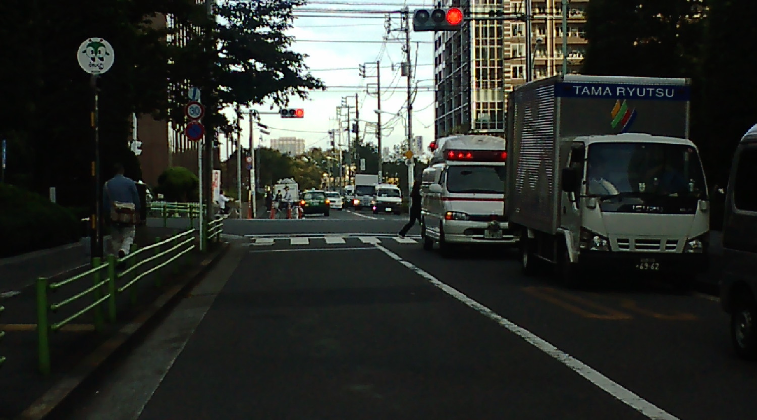 一車線道から二車線本道に出る交差点にて赤信号停止。(当り前だが・・・)