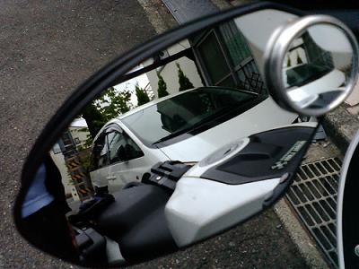 バックミラーで・・・・後方の確認。