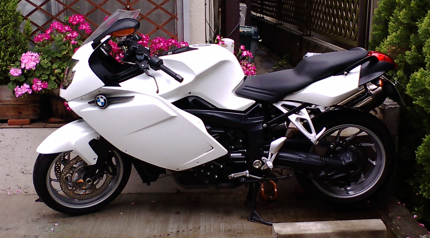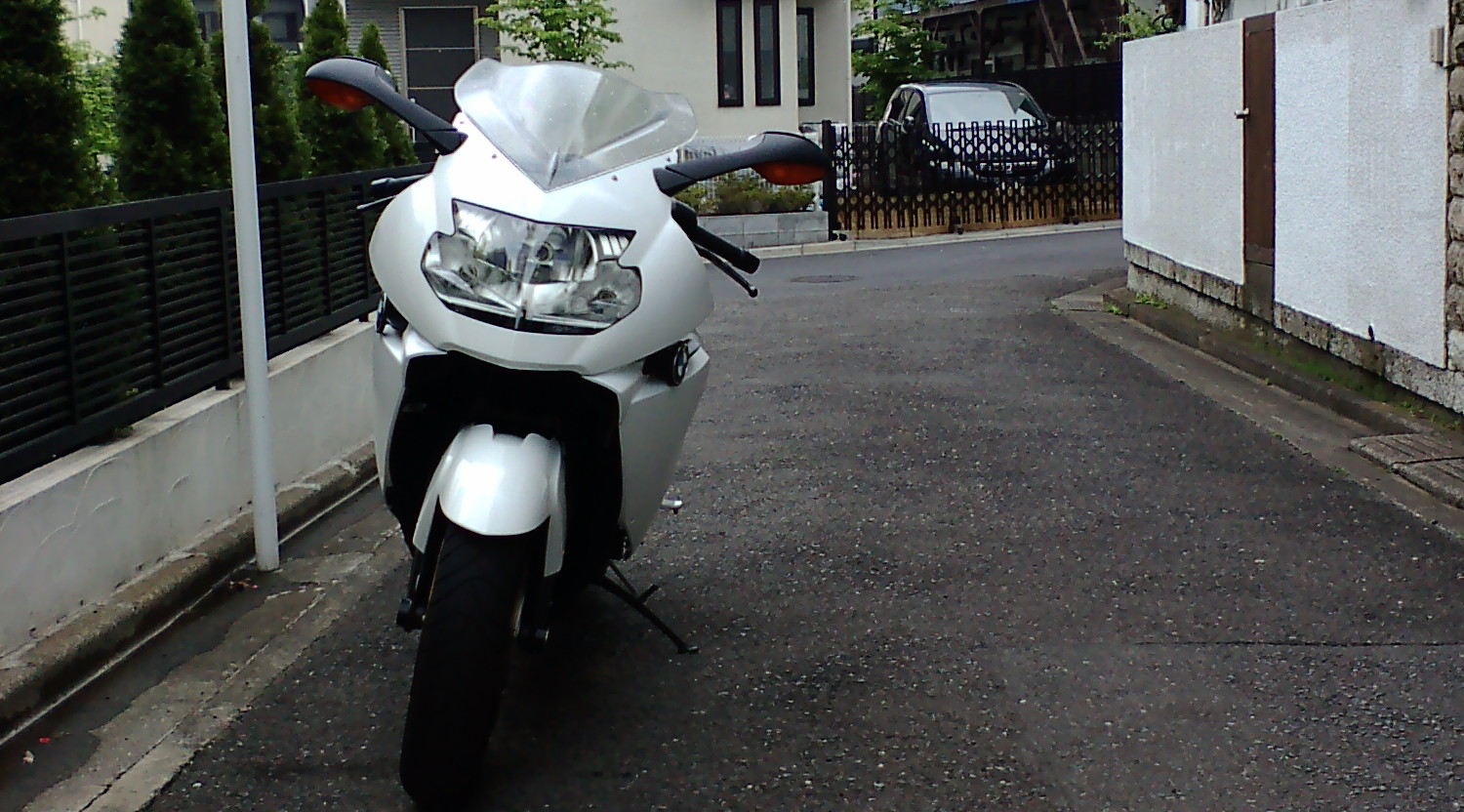 昨日洗車した、白バイ仕様?のK1200Sを引っ張り出し、心配して出てきたお向かいさん(この家の主もK1200S 新型をお乗りで、病気のことはご存知♪)と、談笑をしその後スタンバイに入る。